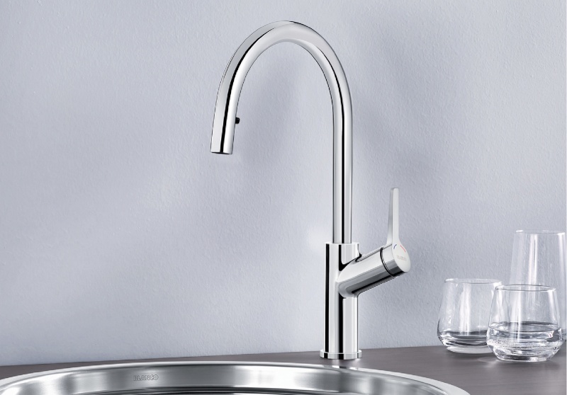 • Высокий изогнутый излив облегчает наполнение высоких кастрюль и ваз